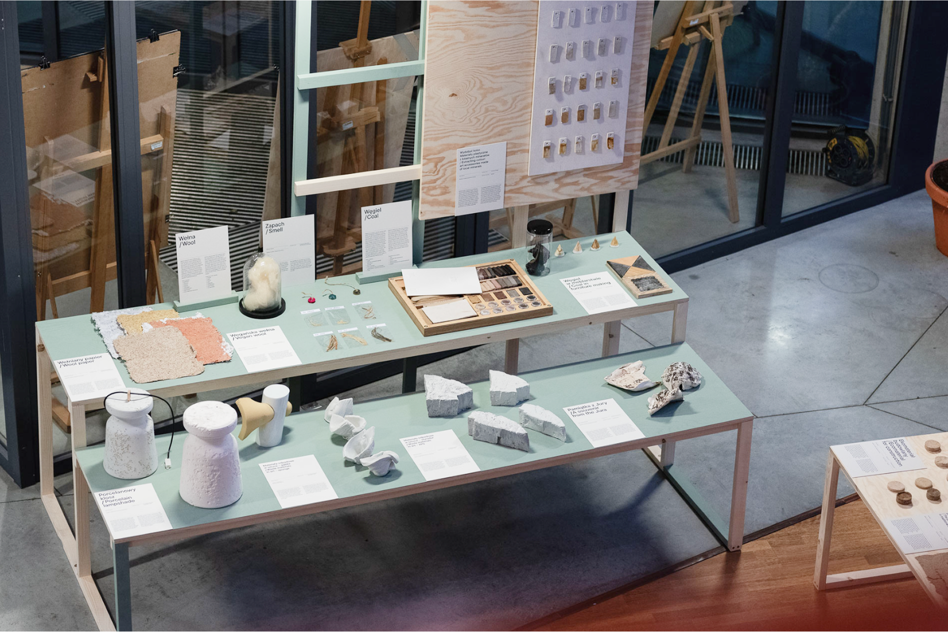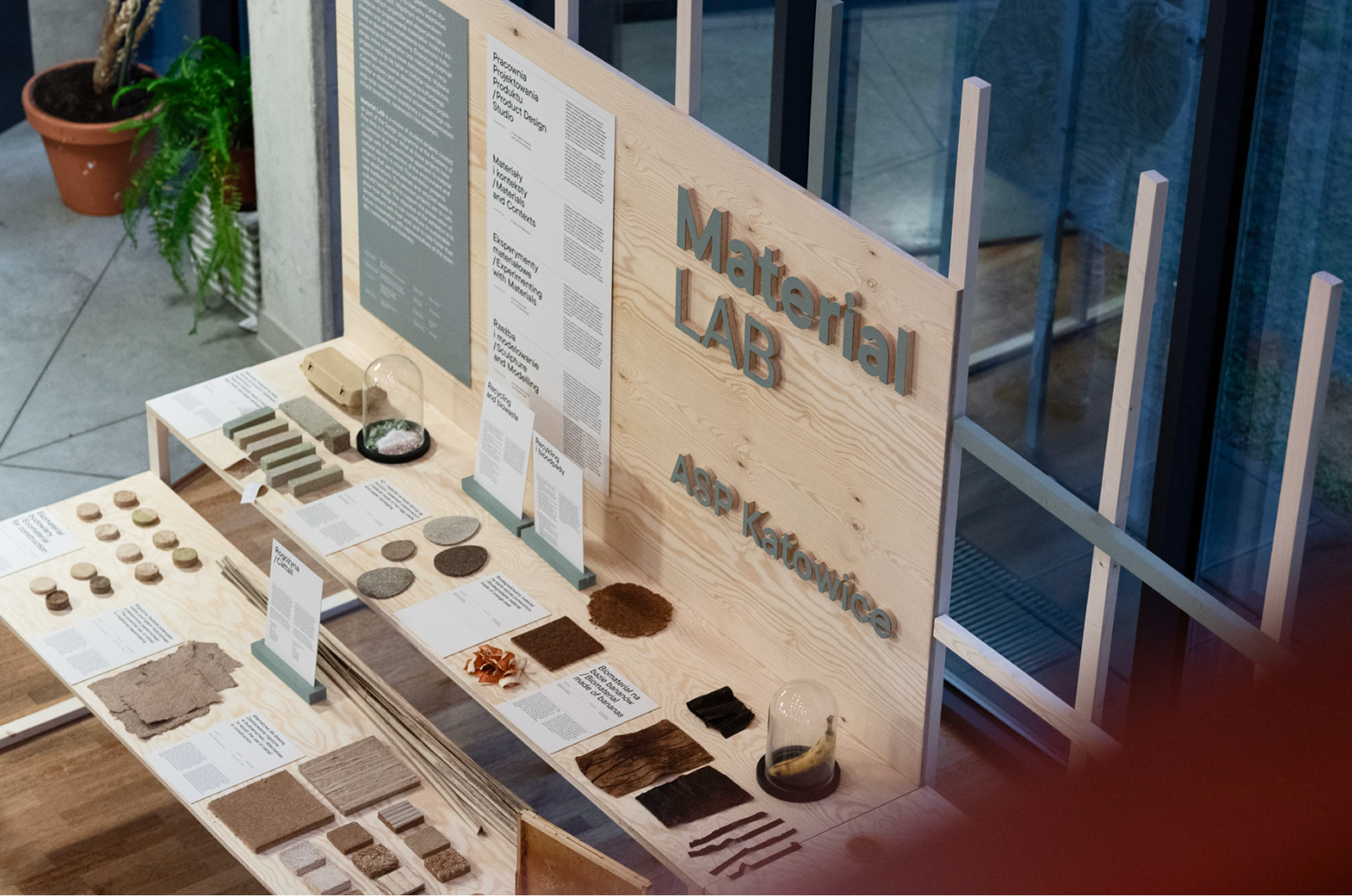 Design of a cohesive key visual for Material Lab — a student work exhibition from the Design Department at the Academy of Fine Arts in Katowice.